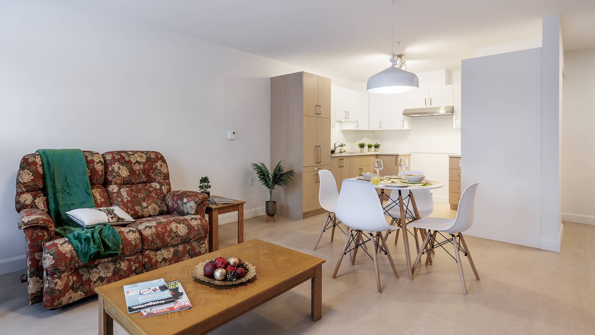 Découvrez l'intérieur de notre nouvelle phase, La Capucine II, pour personnes âgées autonomes ou en légère perte d'autonomie . Profitez d’appartements neufs et confortables, d’une salle à manger pour les repas, d’un espace commun convivial, et bien plus encore.